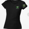 T-Shirt schwarz mit Brust- und Ärmeldruck (ca. 10 cm). Das Shirt besteht aus 100% Baumwolle.